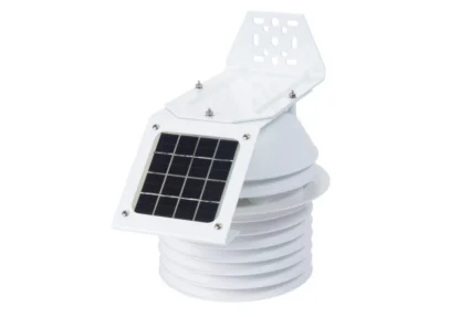 - A motor-driven fan draws a constant airflow through the sensor chamber at 500 feet per minute (2,5 m/s). At night, when the effects of radiation are less, this solar-powered model runs on battery power and the airflow slows to 280 feet per minute (1,4 m/s). Install your own sensor in the sensor chamber. Sensor chamber: 2.24” x 3” (56,8 mm x 76,2 mm). Includes 10 plates, rechargeable batteries, mounting hardware, and 25 ft. (7,6 m) cable.