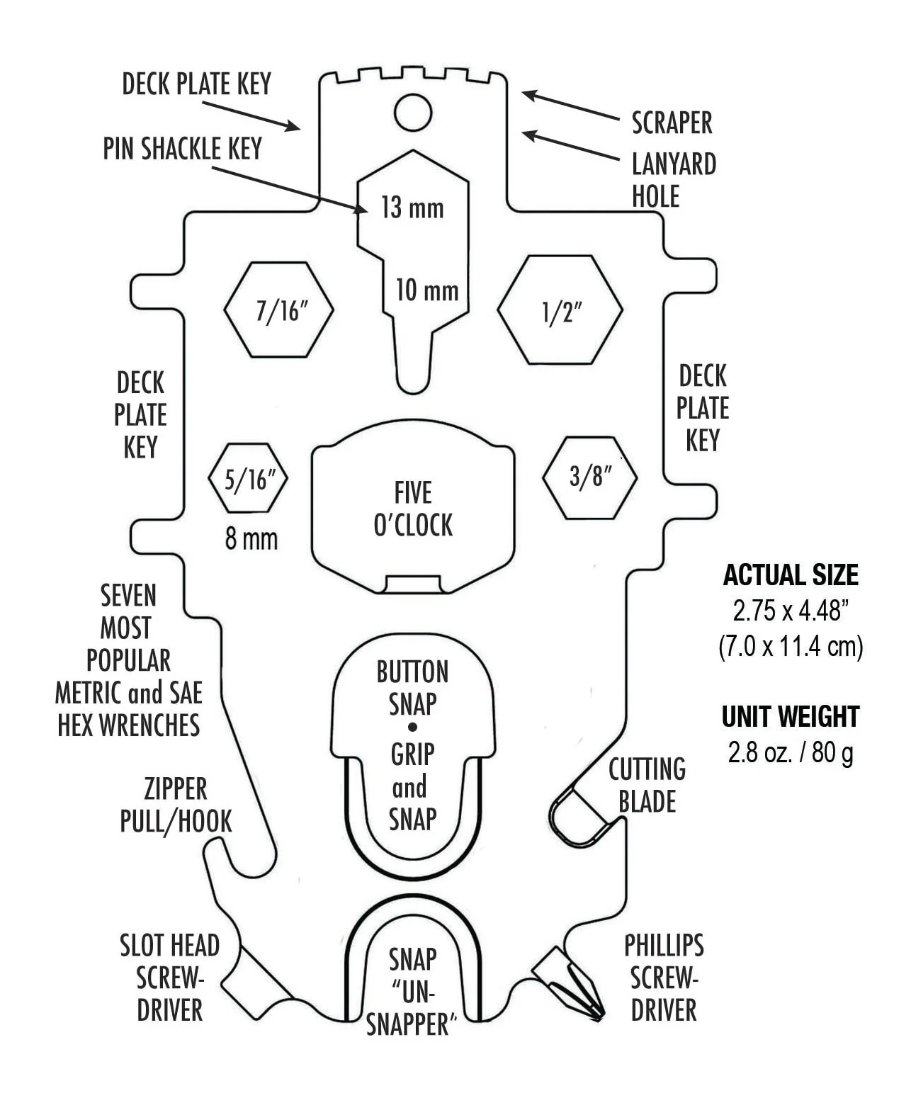 - A deck plate key with attitude! 19 tools in one, this new multi-key wants to go along on your next outdoor adventure! The Snap Tool Multi-Key is a pocket-sized stainless steel tool that is handy, universal, and strong–-perfect for all outdoor activities.