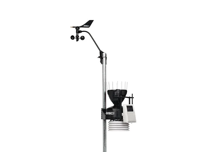The Vantage Pro2 GroWeather wireless weather station is an agriculture-focused weather station that includes all the features of Vantage Pro2, plus a solar radiation sensor for evapotranspiration measurement. The Vantage Pro2 GroWeather provides accurate, reliable weather monitoring with real-time data updates every 2.5 seconds. It features an industry-leading transmission range of 1,000’/300 m from the sensor suite to an optional WeatherLink Console or Enviromonitor IP Gateway.